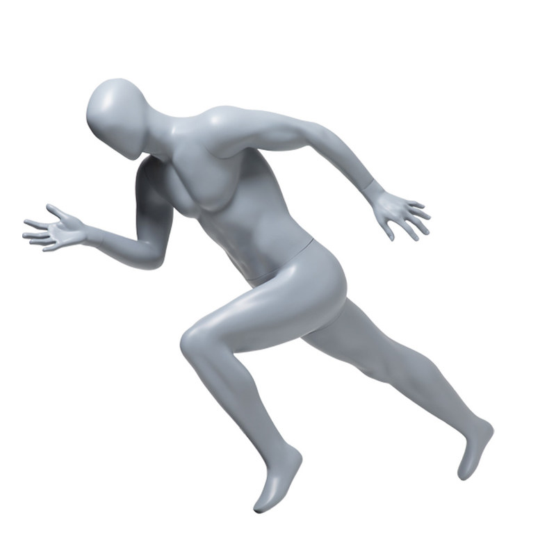 این مانکن یک حالت دویدن پویا را به تصویر می کشد که حس حرکت و فعالیت را به محیط خرده فروشی می رساند. این باعث می شود که برای پوشیدن ورزشی یا نمایش لباس های بیرونی ایده آل باشد.به عنوان آن را اضافه می کند یک عنصر از واقع گرایی و نشان می دهد که چگونه لباس ممکن است نگاه و حرکت در یک بدن فعال.