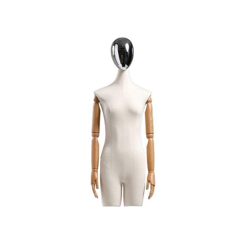 این مدل نیمه بدن برای نمایش در پنجره طراحی شده و ظاهر زیبایی دارد که می تواند توجه مشتریان را جلب کند.ما از تکنولوژی الکتروپلاستی استفاده کردیم تا یک بافت فلزی درخشان را بر روی سطح مدل ارائه دهیم، و به آن یک احساس نجیب و مد دهیم.سر این مدل قابل حرکت است و شما می توانید زاویه و جهت سر را مطابق نیاز تنظیم کنید تا شکل ها و حالت های مختلف را نشان دهید.این انعطاف پذیری به شما امکان می دهد نمایشگاه های پنجره را بر اساس محصولات یا تم های مختلف طراحی کنید، به تازگی و جذابیت فروشگاه خود می رسانید.